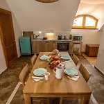 Das Apartment Oszter Udvarhaz verfügt über eine Küche, die zudem mit einem Kühlschrank, einem Toaster und einem Herd ausgestattet ist. Vom Flughafen Hévíz-Balaton sind es ca. 55 Minuten mit dem Auto zu den Unterkünften. Für Aktivurlauber werden Radfahren und Tischtennis angeboten.